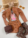 Disponível em cores incríveis para arrasar: caramelo, vermelho e preto. Combine com nossas botinhas estreladas e monte um look de tirar o fôlego!